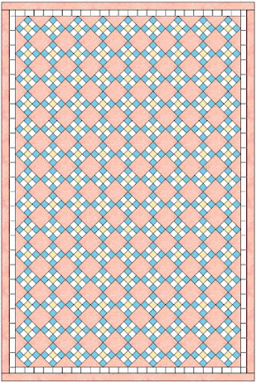 I went cruising along, making my 10 blocks a week and posting them on Instagram, all along trying to figure out my ultimate goal for this quilt. I decided that I wanted to make a rectangular quilt that would fit over the back of my recliner chair. I came up with a preliminary design using Electric Quilt software.